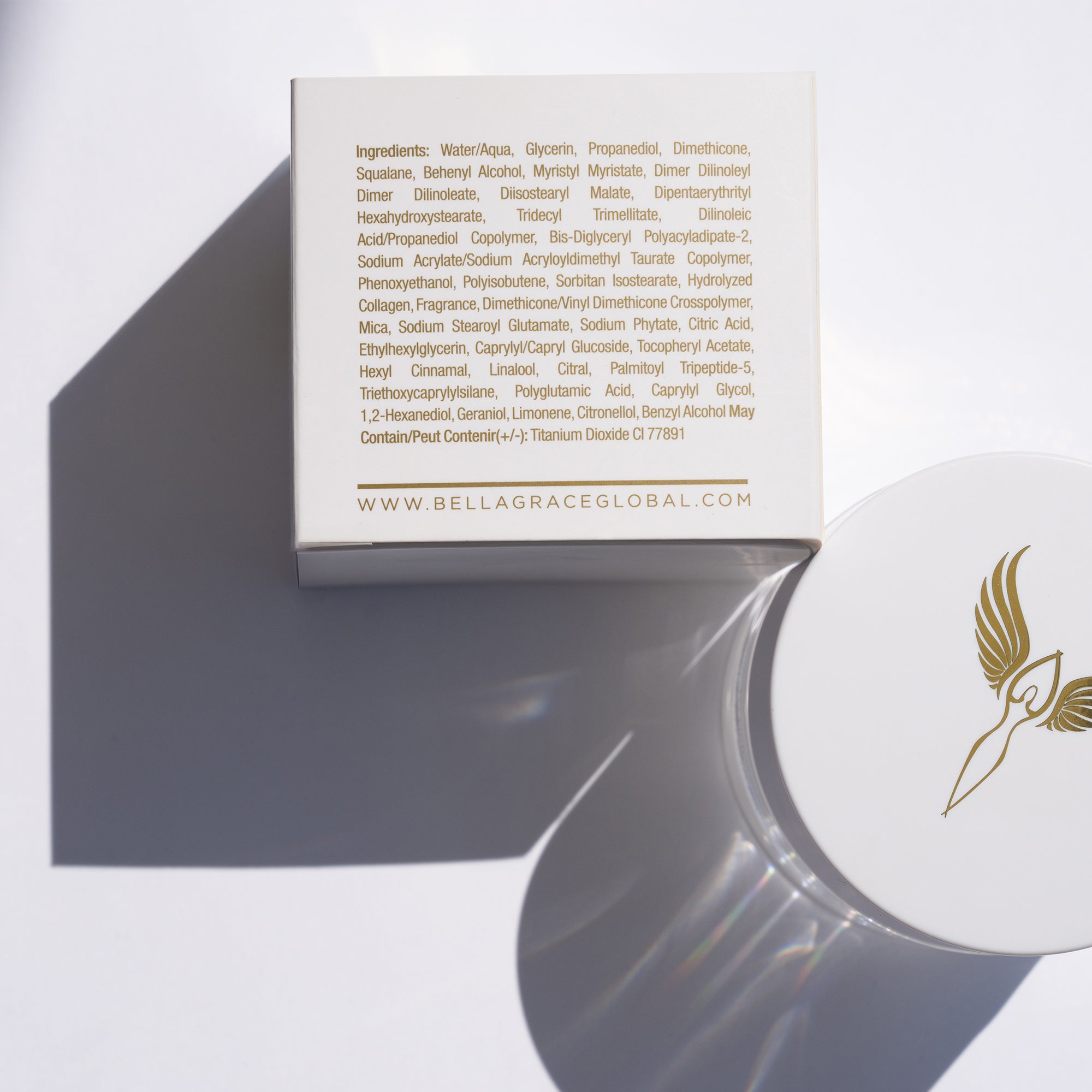 يوضع على الوجه والرقبة وأعلى الصدر قبل وضع مرطب بيلا جريس كولاجين بلامبينج كولاجينج.